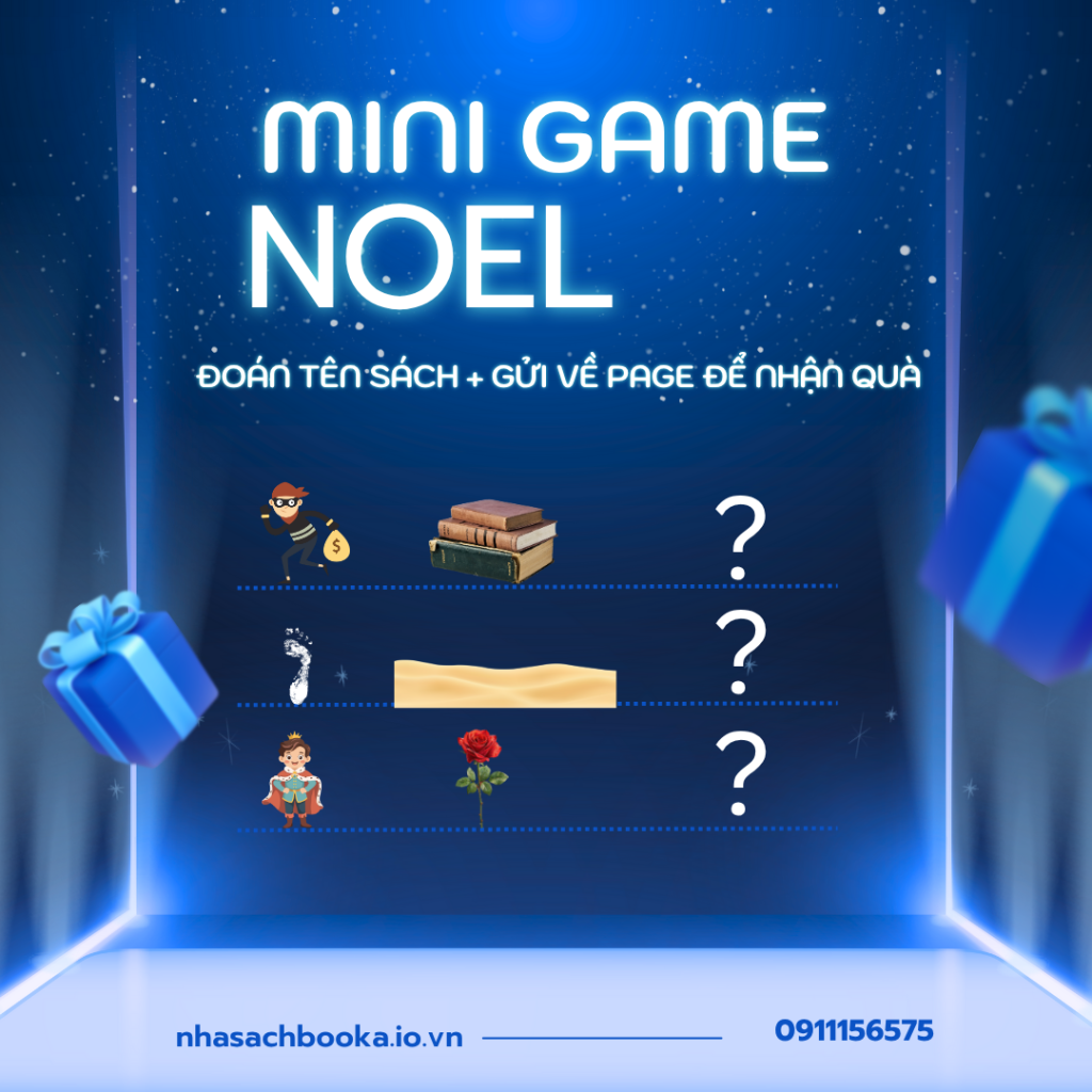 Bạn hãy nhìn hình bên, mỗi dòng là tên 1 cuốn sách. Nếu đoán đủ tên 3 cuốn sách, các bạn hãy liên hệ với Booka qua khung chat, hoặc qua các kênh social bên dưới để được nhận quà Noel nhé!